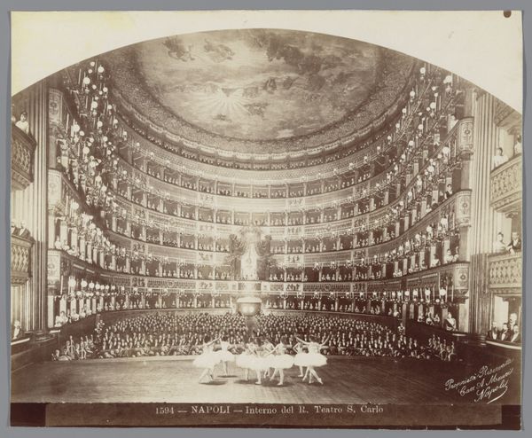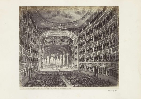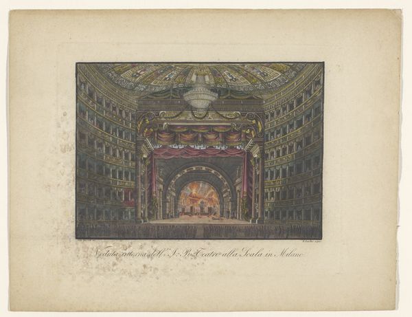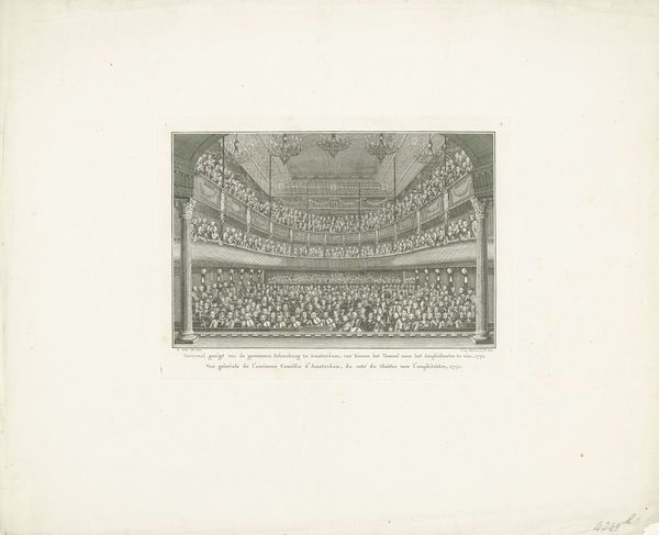 Noach van der Meer II created this print of the interior of the Amsterdam Theatre using etching, a demanding intaglio process. The artist would have coated a metal plate with wax, drawn the image through it with a sharp needle, and then bathed the plate in acid. This would bite away the exposed lines, which could then be filled with ink and printed. The process allows for a high level of detail, as you can see in the depiction of the theater's architecture and the audience members. Consider how this print was itself a form of mass media. It made the theater accessible to a wider audience who may not have been able to attend performances in person. The print also serves as a record of the theater's design and social function, capturing a specific moment in time when theater-going was an important part of Amsterdam's cultural life. This work challenges our assumptions about art by revealing the tight links between making, representation, and the social context of its production.