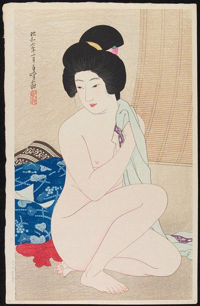 Ito Shinsui made this print called "After the Bath" with ink and color on paper. It's all about gentle lines and subtle colors, which gives it a calm, almost meditative vibe. You can really see the hand of the artist here, in the way the colors blend and the lines flow. What I find super interesting is the texture. It's not just about what you see, but how it feels. The red of the skirt is so flat and solid compared to the wispy background. Shinsui uses this contrast to draw your eye, making you notice the details, like the way the fabric seems to fold and drape. This piece reminds me a bit of Degas, but with its own distinct flavor. Both artists capture these intimate, everyday moments, but Shinsui does it with this amazing quietness. Ultimately, art is about conversation, across time and cultures. It's about how we see and feel, and that's always up for grabs.