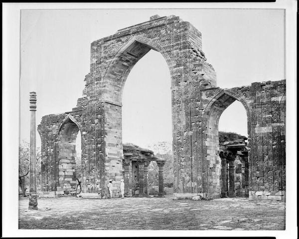 This is a photograph by Shepherd and Robertson of the Iron Pillar of Delhi and the remains of the Quwwat-ul-Islam mosque. In this image, the Iron Pillar stands as a symbol of India’s deep history, predating the Islamic structures around it. The mosque itself, built in the late 12th century, was among the first mosques established in Delhi, signifying the onset of Islamic rule in India. The photograph captures a moment of cultural and political transition, where remnants of pre-Islamic India coexist, and are literally incorporated into, new structures of power. The presence of local people in the foreground also hints at the social complexities of the time. Understanding this image requires an awareness of Indian history, Islamic art and architecture, and the social dynamics of colonial India. Historical texts, architectural studies, and postcolonial analyses provide a wealth of resources for further exploration. Ultimately, this photograph invites us to reflect on the layers of history that shape our present.