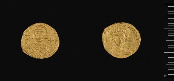Editor: Here we have a gold coin of Constantine VII from the Harvard Art Museums. It’s incredible to think about the power concentrated within this tiny object. What stories does this coin tell about the Byzantine Empire? Curator: This coin acted as a crucial propaganda tool. The imagery, likely carefully controlled, served to reinforce the emperor’s divine right to rule and project an image of power and stability. Consider how the choice of gold itself, and the depicted symbols, would have been understood by the public. What statements were they making? Editor: So, its value wasn't just monetary, but also symbolic. It makes you wonder about the messages we embed in our currency today. Curator: Exactly. Examining this coin allows us to understand how political authority was constructed and disseminated through art. A potent reminder of the intersection between art, power, and public perception.