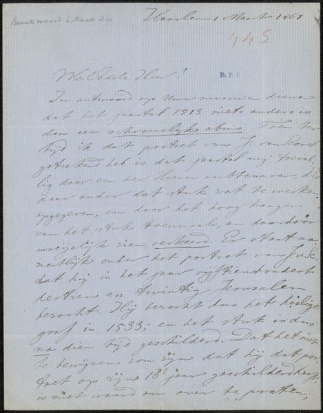 Editor: Here we have "Brief aan Jan Ponstijn en Henriëtte Johanna Petronella van Hilten" by Leo Gestel, likely created between 1926 and 1929. It's a monochrome piece, ink on paper. Looking at the script, I feel a sense of intimacy, as if I'm peering into a personal exchange. What catches your eye in this piece? Curator: Well, from a formalist perspective, what strikes me first is the rhythm established by the handwriting itself. Observe how the varying pressure and consistent slant create a tangible texture across the page. This, in turn, gives rise to the light and shadow as an effect. The consistent form of these graphical forms indicates to me a potential for understanding these in light of language as a set of relations with a structured internal grammar of its own. Do you perceive any particular visual elements that reinforce this sense of structure? Editor: I notice the even spacing between lines. It provides a sense of balance despite the frenetic energy of the script. It feels both spontaneous and considered at the same time. Curator: Precisely. And what about the edges of the paper? The implied boundaries versus the fluid lines of text? Is there an echo to other structural elements here, such as paragraphs and punctuation? The interplay between the structured, almost geometric layout and the organic nature of the handwritten text creates an intriguing tension. Perhaps in itself representing the tension between order and chaos in communication itself. Editor: That's a really interesting way to look at it! I hadn’t considered the edges as contributing to the overall composition. Curator: Focusing on the raw materiality and the intrinsic relationship between elements really opens up ways to approach art analysis. Editor: I definitely learned a lot about that, by keeping an open mind to the details of the page.