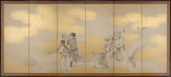 Hasegawa Sakon created this ink-on-paper screen, called "Immortals," in Japan during the early 17th century. At this time, the Kano school was favored by the military government. Hasegawa Sakon’s art, however, embodies the ideals of the independent artist. The monochrome ink wash and the theme of Daoist immortals are rooted in Chinese painting. We know that Zen Buddhism had a significant influence on the visual arts in Japan. Japanese artists freely adapted these conventions and created their own style, which was distinct in its refined simplicity. Sakon belonged to a generation of artists who saw themselves as the cultural vanguard, able to move more freely between different social circles. It helps to examine letters, diaries, and other documents from the time. It’s in this context that we can fully understand art's complex relationship to society.