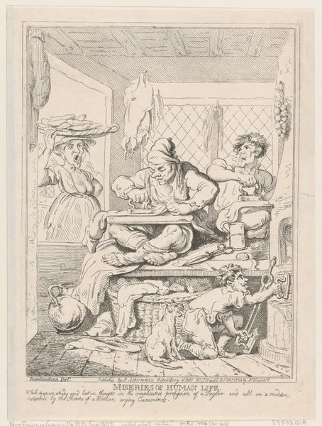 This etching is by Daniël Veelwaard, made in the late 18th or early 19th century. We see armed soldiers bursting into a bedchamber, a scene ripe with symbolism. Note the gesture of the man in the center, hands raised in a protective manner, a universal sign of defense and resistance. Recall similar gestures in ancient Roman art, where figures often raise their hands to ward off evil or danger. This instinctive reaction transcends time, revealing humanity's shared emotional vocabulary. Consider the candle on the table, a flickering light amidst the encroaching darkness. Throughout history, light has symbolized knowledge, hope, and divine presence. Here, it is a fragile beacon, threatened by the intrusion of armed men. This motif, seen in countless paintings and etchings, evokes a deep-seated fear of the unknown and the loss of innocence. The emotional intensity of this scene resonates with primal fears, engaging viewers on a profound, subconscious level. The power of these archetypes lies in their ability to evoke a collective memory.