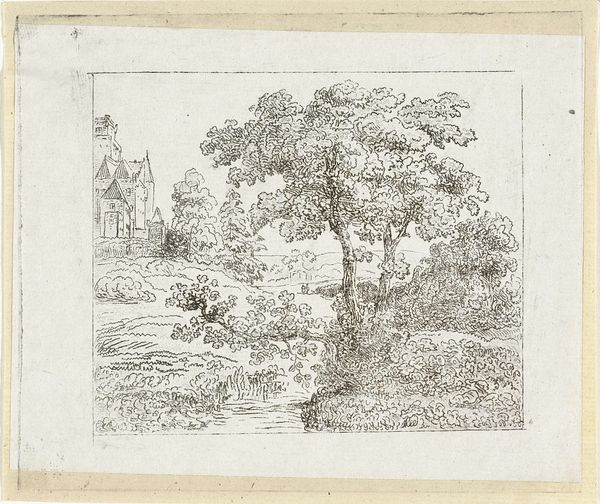 Editor: So this is Andreas Schelfhout’s “Landscape with a bridge over a river,” from around 1811, made with pen and pencil on toned paper. It’s delicate. I’m struck by the artist's hand, you can almost feel the quickness of the sketch. What stands out to you about it? Curator: It’s crucial to consider the material conditions of its creation. The "quickness," as you put it, speaks volumes. Schelfhout wasn’t producing a polished oil painting for a wealthy patron here. This sketch, likely from a personal sketchbook, points towards a different kind of artistic labor, one more akin to craft. Notice the readily available, inexpensive materials: pencil and ink on toned paper. What does this suggest about Schelfhout’s artistic process and intended audience at this stage? Editor: Maybe this was for personal exploration, a way to study the landscape and prepare for larger works. Does that downplay its artistic value, since it wasn't intended as a "finished" piece? Curator: Absolutely not! We need to challenge these hierarchies between "high art" and so-called "lesser" forms like sketches. Consider the labor involved, the artist's skilled hand carefully rendering form with simple tools. Doesn't the materiality – the humble paper and graphite – tell us something about artistic production in this period? Editor: You’re right. Thinking about the context – the materials, the purpose – it reframes my understanding. It’s not just a study; it’s a record of Schelfhout’s interaction with the landscape, a direct connection to his process. Curator: Precisely. And understanding the means of production, the material conditions, brings us closer to appreciating the work on its own terms, resisting established notions of what constitutes "art." Editor: I've never thought about a sketch this way. I see how examining the materials and process can open up a new way to think about art making. Thanks!