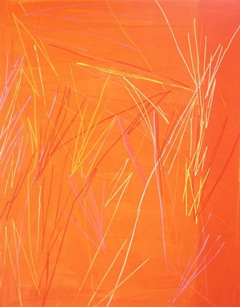 Denise Green’s painting “Evanescence (Red)” presents a striking visual dichotomy through its composition and use of color. The fiery red ground is divided into two distinct areas: a structured grid of vertical lines on the left and a sequence of roses transitioning from a faded orange to a bright white on the right. The contrast between the rigid geometry and organic forms creates an immediate tension. Green’s work often engages with semiotics; here, the rose, a conventional symbol of love and beauty, is repeated and faded, suggesting themes of ephemerality and the passage of time. The structured grid on the other hand, may represent order and control. The painting prompts a broader reflection on how we perceive the world through systems of signs. Do these coded structures enhance or limit our understanding? The texture and brushwork further complicate the painting, offering a richness that undermines any fixed interpretation. The piece ultimately invites us to consider the unstable nature of meaning itself.