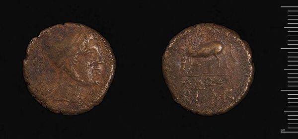 Editor: This is a coin of Alexandria under Volusian. It looks like it's made of bronze and is quite small. The imagery is very worn, but I can still make out a figure. How would you interpret this work? Curator: This coin, though small, embodies the complex intersection of power and representation. What does it tell us about Roman Alexandria's relationship to the emperor, to its own identity, through its chosen iconography? The figure you see may be a localized deity, reflecting Alexandria’s negotiation of Roman authority. Editor: That's fascinating. I hadn't considered the idea of local power dynamics influencing the imagery on the coin. Curator: Exactly. And what does the material itself – bronze, rather than silver or gold – suggest about the economic realities and social hierarchies of the time? Editor: I guess it reveals the social status of the user, and the need for a local economic system during the Roman occupation. I see so much more now! Curator: Indeed. This coin becomes a lens through which we can examine larger power structures.