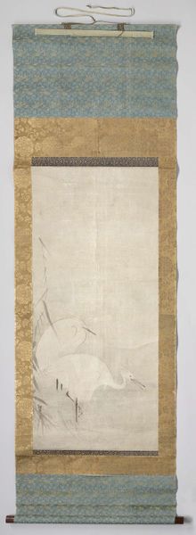 Curator: Looking at this fragment of white and blue striped silk lampas, dating roughly from 1700 to 1750 and attributed to James Leman, one can't help but notice its elegance. Editor: It evokes a certain somber mood. The muted blue against the faded white gives it an air of quiet melancholy, despite the baroque ornamentation. You can tell a lot of work went into this imprinted textile, so what purpose was it intended to serve? Curator: Well, these decorative arts during the Baroque period often served purposes far beyond mere aesthetics. The textile likely adorned a wall or perhaps upholstered furniture in a home of considerable wealth and status, reinforcing prevailing class structures. Considering the East India Company's role in global trade during that time, it might tell an interesting story about power dynamics and colonial narratives. Editor: Absolutely. The material itself, silk, points to a complex web of global trade networks, weaving together narratives of labor, class, and consumption. We need to look at where it was produced, by whom, and under what conditions. These striped patterns suggest something almost mechanically reproduced. What does its construction tell us about divisions of labour in workshops and artisanal guilds during this era? Curator: That's an insightful point. Moreover, I can’t ignore the symbolism inherent in the pomegranate motifs and the arrangement of the flower stalks. How does this composition reinforce societal expectations or perhaps challenge gender roles prevalent in the early 18th century? After all, textile production was so intimately linked to the work of women. Editor: The focus on repetitive pattern might invite considerations of early industrial practices, where techniques were being developed for standardized production. This challenges the boundaries of where "fine art" begins. How much of the weaver’s skill is down to free creativity versus simply following instructions? The textile asks interesting questions. Curator: Examining objects like these offers a richer understanding of the intersectional narratives encompassing gender, race, and power of this era. Editor: Agreed. Investigating the methods of creating, and their cultural contexts allows a more insightful comprehension of how historical crafts influence current discussions about labor and artistic recognition. Curator: Indeed. These discussions offer fresh perspectives into the ways cultural objects function within history and impact contemporary thoughts. Editor: Right. Let’s examine it up close later to consider the nuances of materiality and cultural context even more clearly.