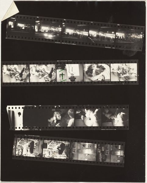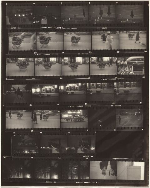 Robert Frank captured this photographic contact sheet, "San Gennaro festival--New York City," using gelatin silver print. The images document New York's San Gennaro festival. Light is a dominant symbol. Arches of lights recur along the filmstrip, evoking a sacred or ceremonial passage, reminiscent of ancient Roman triumphal arches, pagan ritual sites, or even the heavenly gates in religious art. Light carries a psychoanalytic weight, representing enlightenment and truth. The presence of repeated archways reflects our collective, almost subconscious desire for transcendence. This imagery echoes in various cultural celebrations, from religious processions to modern-day festivals. The act of celebration brings people together, connecting us through time. The motif is not linear but cyclical, resurfacing and evolving in different contexts. Even today, light is a powerful symbol, engaging us on a profound and subconscious level.