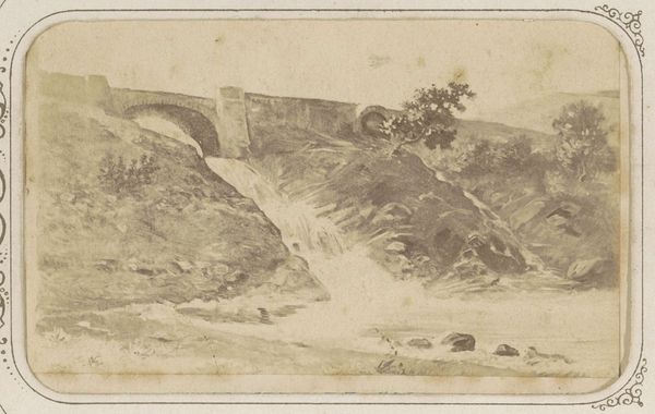 Thomas Girtin made this watercolor painting of Pont-y-Pair, a bridge in Wales, using paper and pigments to create a scene that feels both immediate and timeless. Look closely, and you'll see how Girtin's technique really makes the most of the medium. The translucent washes of color allow light to penetrate and reflect back, giving the rocks and water a luminous quality. The rough texture of the paper enhances this effect, catching the pigment in its fibers and creating a sense of depth and dimension. The quick, fluid brushstrokes capture the movement of the waterfall and the ruggedness of the landscape. While seemingly simple, watercolors are demanding, requiring precision and control. The artist must carefully layer the colors to achieve the desired effect, building up the image gradually. Girtin's skill in this medium allowed him to capture the transient beauty of the natural world, elevating a humble material to high art. His sensitivity to the qualities of his medium allows us to appreciate the beauty of both the landscape and the artistry behind its representation.