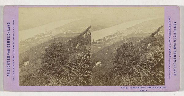 This stereoscopic photograph titled ‘Gezicht op Ilfeld’ presents a scene of a small town nestled in a valley of the Harz region. The sepia tones lend the image a sense of distance and historical depth. The composition is structured by a contrast between the natural and the built environment. We see a foreground dominated by rough vegetation, leading to a clustered arrangement of houses and buildings in the middle ground. Above, a mountain rises which gives a sense of enclosure and frames the town. The stereoscopic format adds a layer of complexity, creating an illusion of depth and space. The slight differences between the two images invite our eyes to actively reconstruct the scene. In its essence, it is not simply about seeing; it engages with the very process of perception, challenging us to reconsider the relationship between representation and reality. The photograph invites us to consider not just what is depicted, but how we come to understand it.