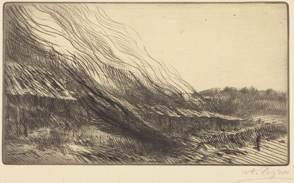 Félix Bracquemond created this print, La locomotive, using etching, a process that involves using acid to cut lines into a metal plate. The plate is then inked and pressed onto paper, transferring the image. Bracquemond was deeply involved in the etching revival in France. Etching was a traditional technique used to reproduce paintings, but was being revived by artists as an original art form. The image’s atmospheric effects and the locomotive's dynamic presence come from the artist's skilled manipulation of line and tone. This industrial subject matter reflects the changing social landscape of the time, as industrialization transformed labor, and the environment. The swirling sky adds drama to the scene, and the composition draws our eye to the locomotive, a symbol of progress. By valuing the craft of printmaking, Bracquemond elevated a medium often seen as secondary to painting, reminding us of the rich potential found in the materials and processes of art.