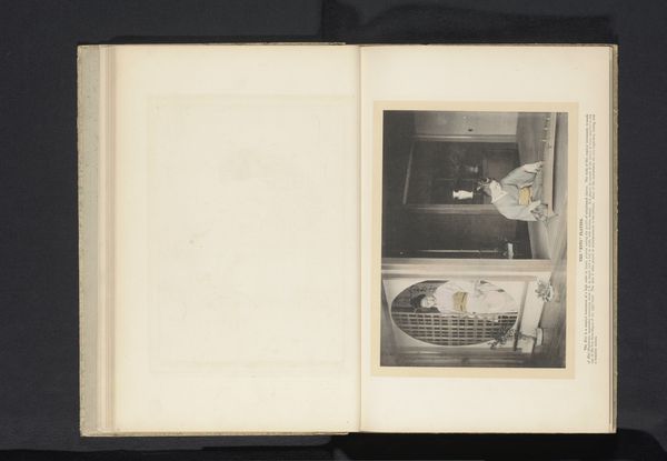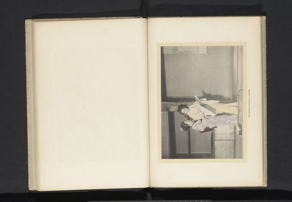 Curator: Before us, we have a captivating albumen print entitled "Vrouw speelt op een shamisen," which translates to "Woman playing a shamisen." Its origins trace back to before 1900. What's your immediate impression? Editor: An intimacy that’s almost voyeuristic! It feels like stumbling upon a private moment. The muted tones evoke a dreamlike nostalgia, and she seems totally absorbed, her music filling the space. The composition has an elegant simplicity; it's minimal and profound. Curator: The shamisen itself is a significant emblem in Japanese art, isn't it? Traditionally, it was not merely a musical instrument, but a vessel for storytelling and cultural memory. The sound carries lineage, history, and emotion, transforming private spaces into conduits of shared experience. It's also frequently associated with Geisha culture, as integral as their clothing or hairstyle. Editor: That resonates profoundly! There's a potent blend of poise and vulnerability. You feel the weight of her tradition, but at the same time, that focused gaze…it speaks of something deeply personal, her soul singing through her fingertips, I think! I also find it so interesting this comes to us via albumen print...the chemical and historic process creates yet another level of nostalgia. Curator: Indeed! Albumen prints are significant for their detail and delicate tonal range; its historical value cannot be denied. Consider that the image's fragility serves as an invitation, urging us to contemplate how art becomes a dialogue across time, linking performer, photographer, and present-day viewers within a single act of observing, perceiving, feeling. Editor: Beautifully articulated! The picture almost feels incomplete, though, with all the blank space on the opposite page in the album. I almost want to pick up a pencil and continue the composition! It hints at unrealized potential, lost narratives, a constant interplay between silence and expression, the seen and unseen. The viewer becomes a participant in the artwork's unfolding, then? Curator: Precisely. It becomes a co-creation. What resonates most with me is how seemingly straightforward imagery invites layered inquiry. Art is alive, imbued with meanings extending beyond visible surfaces. Editor: A stolen glimpse transformed into an evocative question mark, that's what it is! This brief moment offered has so many interpretations, almost all of them fascinating and emotionally vibrant.