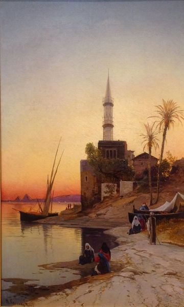 Ivan Aivazovsky painted this view of a mosque in oil, likely in the late 19th century. The dominant symbols here are the mosque itself and the minarets, central to Islamic architecture. They signify faith, community, and the divine, deeply rooted in cultural and religious traditions. Now, consider the minaret - its slender, towering form appears in different guises across cultures and epochs, from ancient obelisks to church spires, each acting as a bridge between the earthly and the celestial. The cross-cultural resonance speaks to a primal human impulse to reach beyond our immediate reality, a yearning that finds expression across disparate religious and cultural landscapes. The mosque, softened by mist, evokes a sense of timelessness, tapping into a collective memory of sacred spaces. It's as if Aivazovsky is inviting us to contemplate the enduring power of faith and the psychological comfort it offers, a beacon across the turbulent seas of history. Like a dream, the mosque returns again and again, remade by each culture that embraces it.