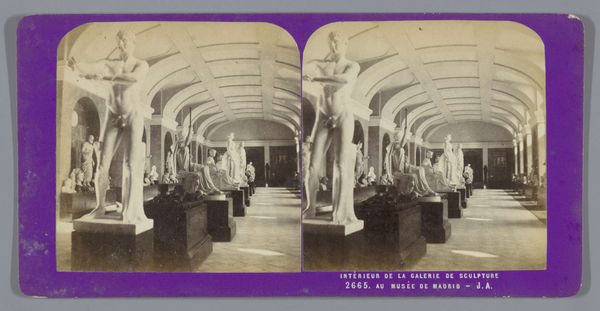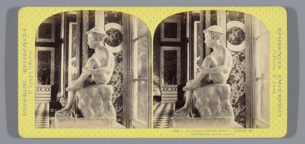 Here we see a stereoscopic card by Ernest Eléonor Pierre Lamy depicting a statue of Napoleon Eugène Louis Bonaparte in a salon within the Palais des Tuileries in Paris. This photograph invites us to consider the performance of power and identity in 19th-century France. The statue, placed within the opulent interior of the Palais des Tuileries, speaks to the construction of imperial masculinity and the Bonaparte dynasty's attempt to solidify its legacy through art and architecture. This image exists in the context of France's complex relationship with its imperial past. The choice to depict Napoleon's son evokes a sense of nostalgia for the empire, even as it hints at the fragility of dynastic succession and the weight of expectation placed on the young prince. Consider how this photograph might have been received by different audiences at the time. For some, it would have been a symbol of national pride and imperial ambition, while others may have viewed it as a reminder of authoritarian rule. The statue in the salon becomes a stage upon which narratives of power, gender, and national identity are played out, inviting us to reflect on the stories we tell ourselves about history and its enduring impact.