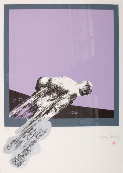 Curator: Robert Amory’s "Iris: Pillow Book," presents a vibrant, close-up image of an iris flower. I’m immediately struck by the cool tones. Editor: Yes, the dominant blues and greens create a serene, almost ethereal atmosphere. It appears to be some form of print. What can you tell me about its production? Curator: The piece is a unique combination of offset lithography and silkscreen printing, achieving its vivid colors. It invites consideration of the flower's internal structure through a semiotic lens. Editor: Interesting how these processes democratize the image, enabling its wide distribution. The choice of an iris—traditionally associated with royalty—printed in this way challenges conventional notions of value and artistic labor. Curator: Indeed, and the title, "Pillow Book," suggests a personal, intimate exploration—contrasting with its public display. Editor: I see a tension between the accessible means of its production and the complexity of its subject matter. It's a compelling interplay. Curator: Ultimately, its chromatic intensity leaves one to contemplate the symbolic and material dimensions of reproduction. Editor: I appreciate your viewpoint; understanding the means of production certainly expands my appreciation of the piece.
