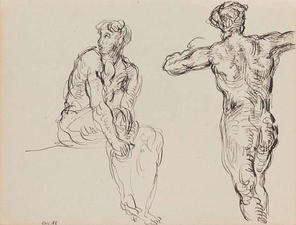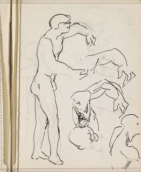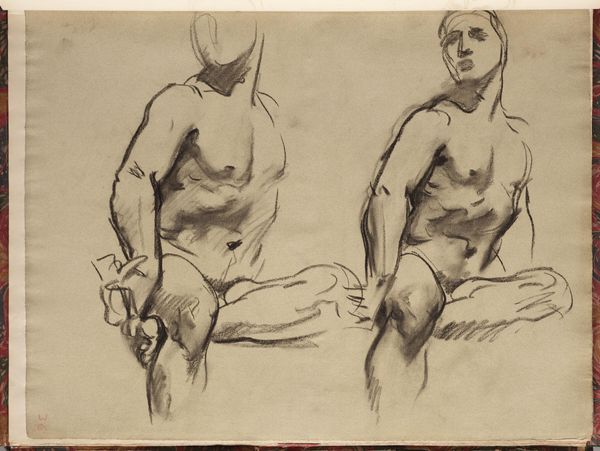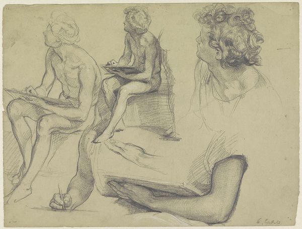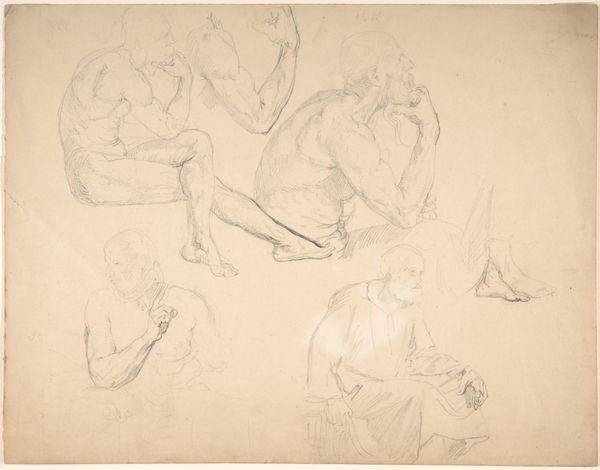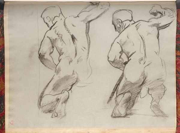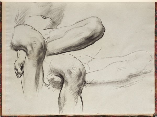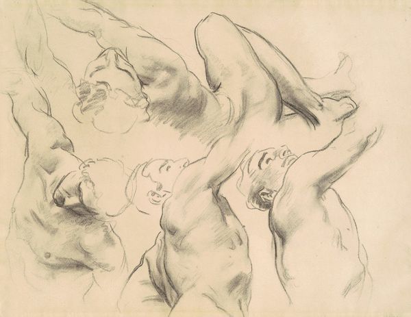 Curator: Editor: John Singer Sargent's "Studies for one of Angels at Right, 'Israel and the Law'," strikes me as a burst of energy, capturing the essence of raw power and determination, even in sketch form. What leaps out at you? Curator: It’s interesting how Sargent teases out the monumental from the mundane sketch. Imagine him, charcoal in hand, wrestling with form, not just depicting an angel, but feeling its divine strength. Do you sense that struggle? Editor: Absolutely! It's like witnessing the angel mid-battle, a dynamic force. But how does this connect to "Israel and the Law?" Curator: Ah, there’s the juicy bit. Sargent, in his murals, often explored complex relationships between power, faith, and humanity. Perhaps this angel embodies the unwavering strength of the law, or even the struggle to uphold it. What do you think? Editor: That gives me a lot to think about. Thanks! Curator: My pleasure, it always does me good to wrestle with art, too.