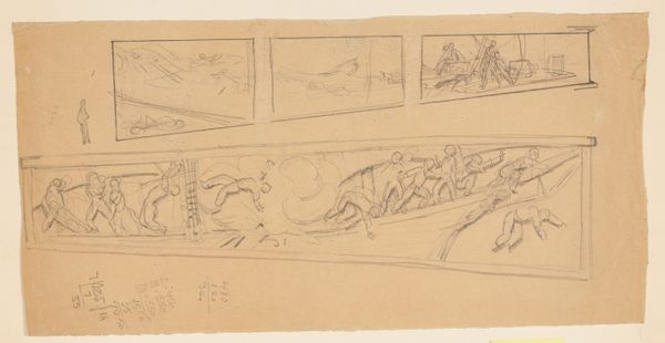 Charles Sprague Pearce created this study for lunettes using graphite on paper. At first glance, the arrangement of nine semi-circular vignettes presents a rhythmic, almost architectural structure on the tan paper. The figures within each lunette suggest moments of contemplation and activity, inviting a sense of narrative despite their fragmented presentation. Pearce's strategic use of the lunette form, traditionally a space for frescoes, prompts a semiotic reading of architectural and art-historical signs. The linear quality of the graphite allows for subtle gradations in tone, creating a dynamic interplay between the figures and their spatial context. The formal elements of the composition challenge conventional modes of representation, as the artist is engaged in deconstructing the established symbolic order. Ultimately, this study functions as an exploration of form, line, and space, reflecting a deeper engagement with perception and representation that invites us to reconsider the relationships between art, architecture, and human experience.
