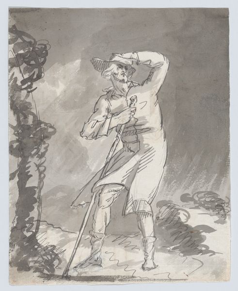Editor: This is John Flaxman's "Apollo Preceding Hector with His Aegis, and Dispersing the Greeks," a drawing that seems to be done with charcoal and watercolor. I’m immediately struck by the dynamic energy, especially with those diagonal lines suggesting motion and dispersal. It’s almost cinematic. How do you interpret this work within its historical context? Curator: Flaxman's piece really speaks to the cultural fascination with classical antiquity that defined the Neoclassical movement. Museums at the time were really shaping public perceptions of Greece and Rome through casts and sculptures, informing art like this. Notice how the line work mimics the engravings and reliefs that were gaining popularity at the time and distributed in affordable books, democratizing access to this classicism. Where do you see the influence of those period engravings? Editor: Definitely in the clarity of line and the figures themselves—that stark contrast gives it a very graphic quality, almost like an illustration from a history book. The characters look quite formal as well. Curator: Precisely. That linearity, while visually appealing, also plays into the larger political theater of the time. Art like this often served a didactic purpose, reminding viewers of historical and moral virtues but also reflecting the national aspirations and emerging identities of the 18th and 19th centuries. How might the dispersion of the Greeks be interpreted by an audience familiar with then-current geopolitical events? Editor: That's interesting. It’s as if Flaxman's not just illustrating a scene from Homer but also commenting on contemporary power struggles. The way Apollo’s actively scattering the Greeks is quite forceful. Curator: The "dispersal" isn’t just an action within the story but an allusion to contemporary anxieties surrounding cultural and political disruptions across Europe at the time, so Flaxman might have seen and framed the image with then-contemporary national and philosophical positions regarding liberty and citizenry. Flaxman uses that mythological setting as a commentary on much larger socio-political issues of the period. Editor: So, it's more than just a scene—it's a political statement veiled in classical imagery. I’d never considered that this drawing would have such contemporary commentary embedded. Curator: Indeed. Recognizing those underlying currents is crucial when engaging with historical art. Flaxman provides much food for thought in the visual form.