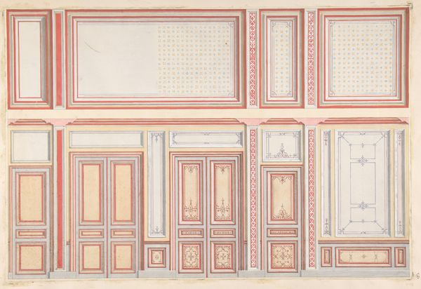 Editor: This is "Side Entrance" by Lucy McKenzie, currently held at the Tate. It depicts an architectural interior. The rendering is so precise. What do you see in this piece? Curator: This meticulously rendered painting brings to mind questions of production and labor. Notice the flattening of space, almost like a technical drawing. This emphasizes the act of construction itself. What kind of labor do you think is being represented here? Editor: I guess architectural design and maybe even the physical building work? Curator: Precisely. McKenzie blurs the lines between fine art and the often-overlooked skill of architectural craftsmanship. The materials themselves—paint, canvas—become tools in questioning the value we assign to different types of making. It certainly makes you think. Editor: I agree. I never really thought of painting this way before.