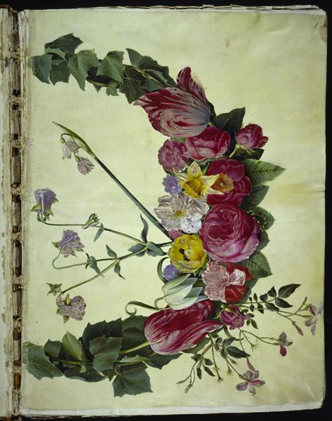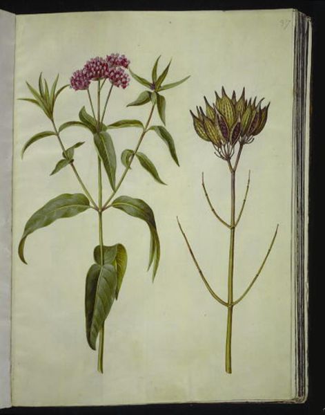 Editor: Here we have "Fritillaria meleagris", or almindelig vibeæg, created between 1649 and 1659 by Hans Simon Holtzbecker. It’s a delicate drawing employing watercolor, gouache, and colored pencil. I'm immediately struck by how meticulously each flower and its bulb are rendered, and the detail of the texture of the petals. What elements stand out to you in this piece? Curator: The composition is clearly organized around a formal principle of botanical illustration. Notice how each flower occupies its distinct space on the page. Consider also the almost scientific detachment with which Holtzbecker has rendered the plants. The lines are clean, and the colors are carefully observed and replicated. What does the use of different media – watercolor, gouache and coloured pencil - suggest about Holtzbecker’s intentions? Editor: I suppose that he used them for precision and to give more volume to certain parts like the bulb. It almost seems hyperrealistic for the time. Curator: Indeed. The blend allows for tonal variation and subtle gradations of color, achieving a level of naturalism characteristic of botanical studies. Consider the use of negative space, it serves not merely as background, but actively contributes to the clarity and isolating presence of each specimen, so essential in scientific illustration. Do you find the limited palette affects your reading of the image? Editor: Definitely, it contributes to a sense of scientific objectivity, steering clear of overt emotional expression. I am realizing how important is to look carefully at the way an artist organizes elements on the page. Thanks! Curator: Precisely. This exercise reinforces how a focus on formal qualities can yield a richer understanding of artistic intent.