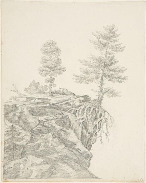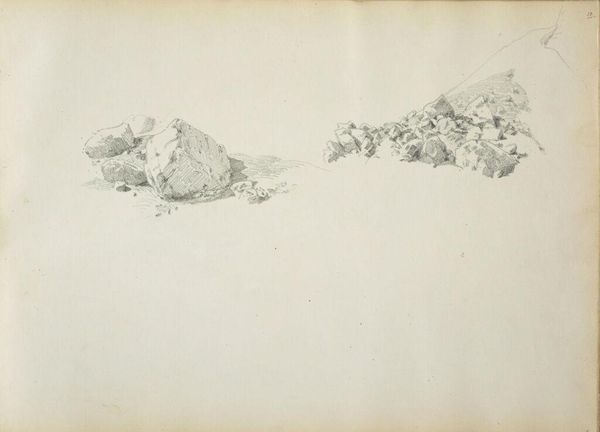 Curator: This is John Singer Sargent's "Studies of Trees and Rocks," currently held at the Harvard Art Museums. It’s a preparatory sketch in graphite, capturing his observations of the natural world. Editor: I find its sparse quality incredibly compelling. It feels like a glimpse into Sargent's mind as he isolates these elements from the landscape, almost as a raw survey of form. Curator: Sargent, moving from his portraiture, frequently turned to landscapes later in his career. These studies reveal the importance of direct observation to his process. Editor: It is interesting how each form receives its own little spotlight. It makes me think about landscape as a site of resource extraction – each tree or rock seen as a singular, isolated element. Curator: That's a valuable point. Consider also the institutional context; such studies were vital for academic training, reinforcing a particular mode of seeing. Editor: Absolutely, and thinking about who had access to that training, and what perspectives were valorized, offers a deeper understanding of both Sargent and his time. Curator: Indeed, this sketch, seemingly simple, holds complex layers reflecting both artistic practice and the broader social context. Editor: A reminder that even the most "natural" of scenes are viewed through a cultural lens.