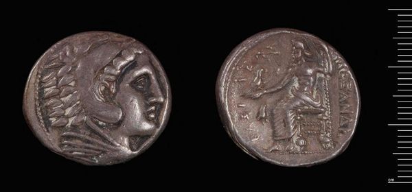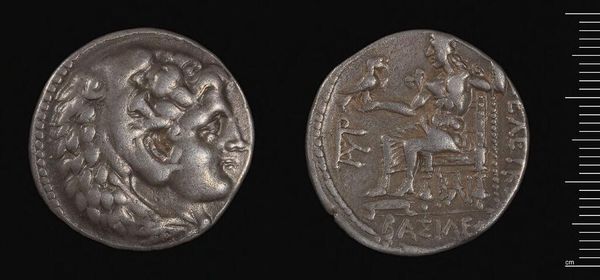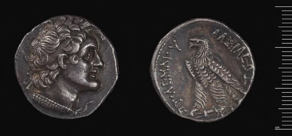 Editor: Here we have a silver Tetradrachm of Ptolemy VIII. The details are amazing for something so small! What can you tell me about its function as a political object? Curator: Well, coins like this were essentially mass media. The portrait of Ptolemy VIII presents a specific image of the ruler, controlling how he was perceived. Consider the iconography - what does the eagle symbolize in this context? Editor: Power, maybe? And that the coin was widely circulated would reinforce Ptolemy’s authority. It's interesting how art intersects with politics. Curator: Precisely! Currency becomes a tool for disseminating power. What does it mean for an image to be endlessly reproducible in this way? Editor: I hadn't considered that before. It makes you think about the power of images, even on something as mundane as money. Curator: Exactly. And thinking about who controlled the mint, the distribution routes...it all speaks to how power operates. Editor: This really adds layers to how I view such objects. Thanks for illuminating that! Curator: My pleasure. There's so much more to uncover by asking these questions!