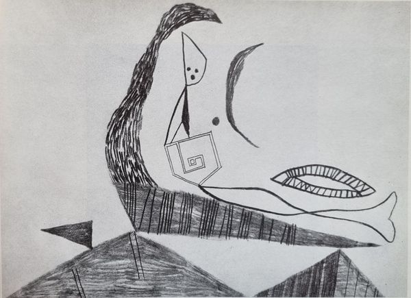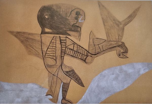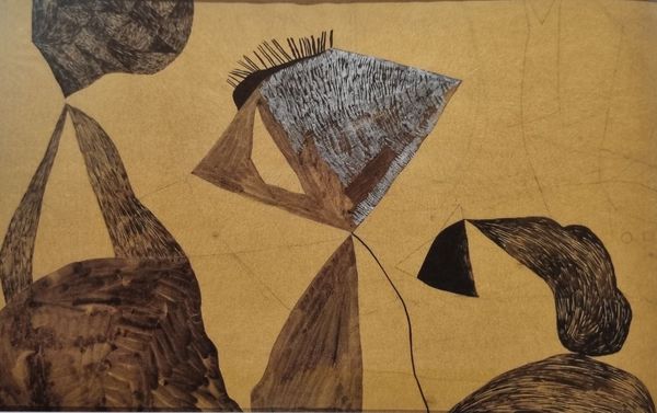 Vajda Lajos made this drawing, Cave Grave, in 1938 with pencil and Indian ink on paper. The limited palette of black and brown, and the way the marks seem to stutter across the surface, gives it a strange, dreamlike quality. The material aspect of the work— the visible grain of the paper, the way the ink bleeds slightly—really emphasizes the physicality of the medium. It’s almost as if the materials are collaborating with the artist, adding their own voices to the conversation. The overlaid shapes on the right recall Cubist collage, but in the center a more organic and biomorphic form merges into these geometric forms. Taken as a whole, the composition suggests a kind of psychic landscape, with fragmented figures and abstract shapes floating in a space that feels both intimate and infinite. This interest in exploring the subconscious definitely puts me in mind of other surrealist artists like André Masson, who also used automatic drawing as a way to tap into the unconscious mind.