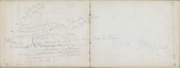 Curator: Here we have "Annotations," a drawing in ink on paper by George Hendrik Breitner, created around 1893. What are your initial thoughts? Editor: At first glance, it appears quite simple—almost like a casual notation. The texture of the paper contrasts with the fluid ink calligraphy to create a harmonious arrangement in a muted palette. Curator: Breitner was working at a fascinating juncture in Dutch society, one of increasing urbanization and industrialization, especially felt in Amsterdam. The quick sketches capture slices of the life he witnessed firsthand. He used annotations as records. Editor: Focusing on the composition, I’m struck by how the lines vary in weight and direction. The strokes create an intimate, personal dynamic on this simple, ivory-toned surface. Notice the economy of the marks—nothing seems extraneous. Curator: Breitner's aesthetic reflected a shift in art. Traditional approaches idealized depictions were replaced by unflinching observation of reality, influenced by Impressionism and photography, with an attempt to chronicle all echelons of Amsterdam inhabitants during an epochal change. Editor: So you would say the act of documenting specific social dynamics makes the ordinary interesting and the subjective observations culturally important? The placement of the text, as if quickly jotted down, does suggest an immediacy— almost a rejection of formal composition rules. Curator: Precisely. And it emphasizes Breitner's broader project: to document the everyday and enshrine it into collective memory through the fine arts. The mundane in its cultural time capsule for posterity. Editor: What do you find to be its enduring appeal? Curator: In my estimation, its ability to invite introspection, reminding us that even seemingly insignificant observations can hold historical and emotional value. Breitner allows viewers to glimpse the daily tempo of a different Amsterdam, sparking curiosity and critical thinking. Editor: Yes, and viewed from the pure semiotics, that balance of written lines and the visual page as surface for impressions and memories offers us an elegant, timeless study of contrasts. Curator: A worthy reflection, indeed!