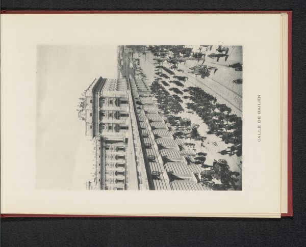 Curator: This silver gelatin print, titled "Façade van het stadhuis in Madrid," believed to have been created between 1888 and 1898 by Hauser y Menet, depicts a slice of civic life in the Spanish capital. Editor: My immediate response is a sense of aged dignity. The grayscale palette emphasizes the architectural details – the intricate carvings, the rows of windows. Curator: Absolutely. The image, rooted in realism, prompts reflections on urban development and political authority. What can we gather by observing the building, and by extension, those who occupied the city spaces surrounding it? What do the bare trees and passersby communicate about Madrid in that time? Editor: Looking at those details—the sculptural work above the windows, and the slight blurring indicating movement in the street—a narrative of power certainly emerges, but also of ordinary existence, even rebellion perhaps. I find myself drawn to those figures in shadow as representative of common life that continues beneath that weight. Curator: Precisely. There is, of course, the inherent power dynamic with photography itself at the time—who had access, whose story was being told? Even seemingly objective images can still reinforce hierarchies, if viewed passively. Editor: Beyond the sociopolitical elements, the towers speak to something almost primal. Historically, the spire is a symbol of transcendence, spiritual connection. The Madrid city hall perhaps communicates civic aspirations for the entire municipality through those towering elements. Curator: So the building operates as both physical and aspirational infrastructure? I appreciate that nuance, how we can interpret these urban structures and landscapes to glean a vision beyond a single reading of established power. Editor: The photograph is far from simple; it's a dense historical, social, and emotional document. Curator: Indeed. The way the photographer captured it freezes it, demanding that we read those intersecting narratives in still life, and further consider our own roles as inheritors of its legacy.