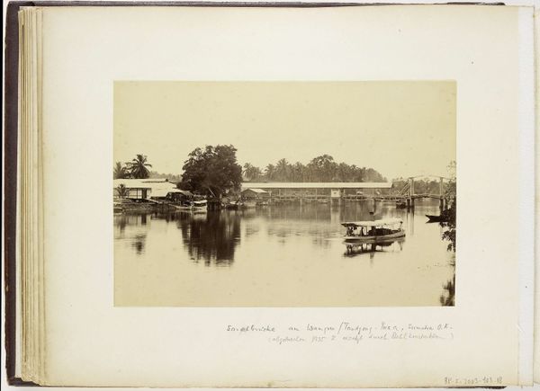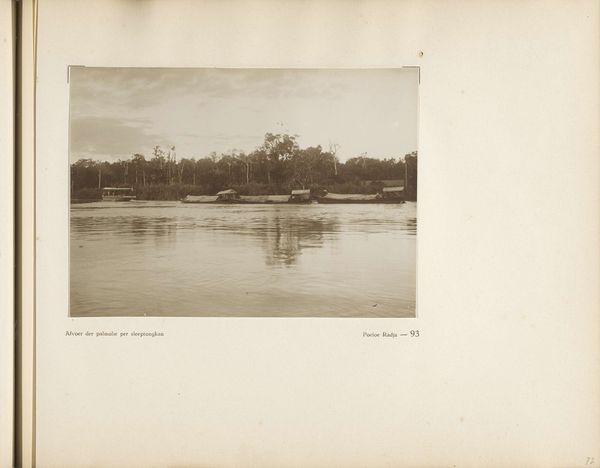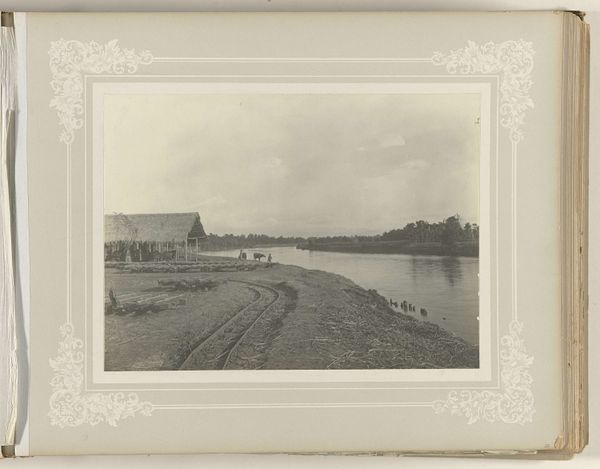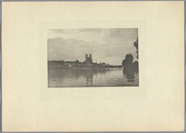 This image offers a view of the water reservoir of Lowell in an anonymous photograph of muted tones, measuring 105 by 182 mm. The composition is defined by a striking horizontality, where the water reservoir dominates the foreground, reflecting the architectural structures and sparse vegetation along its edge. The subtle gradations of light and shadow evoke a quiet stillness. In terms of semiotics, the water reservoir acts as a signifier of modernity and human intervention in the landscape, reflecting early industrial advancements. The lack of human presence emphasizes the mechanical and structural aspects, rather than the social or humanistic. The photograph’s restrained palette and emphasis on form challenge traditional landscape aesthetics. It invites contemplation on the relationship between industrial progress and the reshaping of natural spaces. The formal qualities of the photograph, such as its structured composition and subdued tones, function as part of a discourse on the evolving landscape and the impact of modernity.