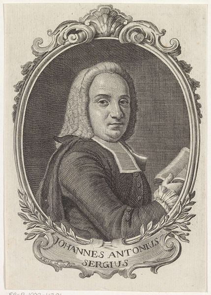 Gottfried August Gründler created this portrait of Johann Friedrich Joachim, using engraving, a printmaking technique that demands precision and control. The image is built from tiny, deliberate marks incised into a metal plate, probably copper, that is then inked and pressed onto paper. The density of the lines creates the illusion of tone and texture, from the fine lace at Johann's collar to the heavy drape behind him. Look closely at the lines that define Johann’s face, and consider the number of passes the artist would have needed to make to build up the image. Engraving like this was a highly skilled craft, requiring years of training, and was often associated with commercial printmaking, used for reproducing images and texts efficiently. The level of detail and artistry elevates this portrait beyond mere reproduction, highlighting the tension between craft, labor, and artistic expression.