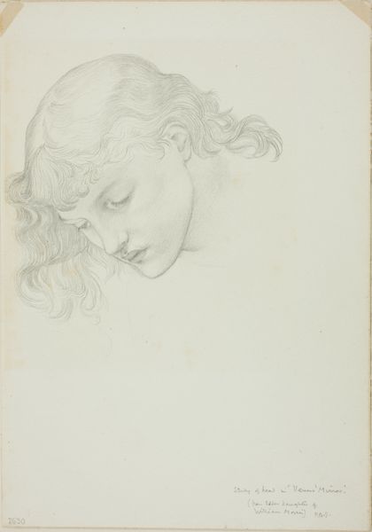 Curator: Here we have "Die Köpfe Romeos und Julias aus _Romeo und Julia_" or, "The Heads of Romeo and Juliet from _Romeo and Juliet_" created by Victor Müller around 1869 to 1871. It is a drawing using pencil, charcoal, and chalk on paper. Editor: The delicate lines create such a vulnerable and pensive mood. There's a dreamlike quality to the way they're rendered; you can sense their inner turmoil without a need for elaborate detail. Curator: Indeed. Müller, associated with Romanticism and Academic art, situates these characters within a lineage of tragic, star-crossed lovers deeply embedded in the European psyche. Notice the distinct lack of theatricality. Müller forgoes spectacle. This wasn't meant for stage design; it’s an intimate, internalized study. The Städel Museum reminds us that it's a work on paper and shows a study of heads. Editor: That internalized quality speaks volumes. Romeo and Juliet are eternally youthful figures; in our cultural memory, they represent impulsive love meeting social structures with disastrous effect. To see them rendered this way—almost ghostly, suspended in charcoal—emphasizes their liminal existence between passion and death. Even today they influence depictions of youthful longing and unattainable romance in media. Curator: And Müller’s deliberate choice to use drawing—with its immediacy and potential for revision—highlights this as a study of affect, rather than a finished pronouncement. Drawing itself was gaining institutional recognition at this time as a legitimate art form, which shaped its value and how it would be consumed as art. The Romanticism here becomes about accessing deeper truths, unburdened from the academic strictures. Editor: Right, the very impermanence of the medium mirrors the ephemeral nature of their love, its intense and tragic brevity. In these almost photographic reproductions and prints derived from photographs, this kind of imagery helped define the look and feel of romantic agony. Seeing these familiar features distilled and brought forth from the symbols is like finding an essential idea within the famous tale. Curator: Absolutely. And when considered as part of Müller's broader career, one notices he often uses literary themes and characters. This shows art not only as decorative and beautiful, but as playing a crucial cultural and public role by representing key narratives. Editor: It adds an interesting layer to contemplate not just what we see here on the paper, but how our perceptions of this story are built from visual fragments that echo and transform over time. Curator: It highlights the lasting power of this imagery and story through time. Editor: I completely agree, it brings a quiet meditation to the forefront.