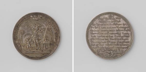 This silver medal, commemorating the bicentennial of the Franeker Academy, was made by Johan George Holtzhey. Consider how Holtzhey used dies to strike the two sides of the medal. This process, a mechanized form of engraving, allowed for the relatively quick production of multiple identical objects. The crisp lines and precise details, the result of careful die-cutting, speaks to the engraver’s skill. The silver itself, cool to the touch and weighty in the hand, lends an air of importance. Medals like these played a crucial role in shaping public memory. They were tangible symbols of institutional pride, circulated among alumni and supporters of the academy. The very act of holding and owning such a medal reinforced a sense of belonging and shared history. The medal’s inherent qualities, its material, manufacturing process, and distribution, imbued it with social and cultural significance far beyond its monetary value.