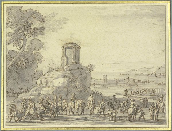 Curator: This is "A Fair" by Michael Angelo Rooker. It is currently held in the Tate Collections. Editor: It’s quite murky, isn’t it? Almost monochromatic with that brown wash. The crowd seems agitated. Curator: Rooker, born in 1746, was known for his topographical drawings and engravings. The dimensions are 305 by 487 millimeters. It looks like he might have been experimenting with conveying a sense of movement. Editor: I wonder if the artist consciously highlighted social tensions through his artistic practice by depicting communal gatherings? What is he trying to tell us about the state of society? Curator: The execution points to a process of layering and perhaps a deliberate emphasis on the material qualities of the pigments and the support itself. Editor: I find myself pondering the narrative implications within this seemingly simple market scene. There is a palpable sense of unease. Curator: It’s fascinating how different viewpoints can shape our interpretation. Editor: Indeed, it provides another perspective on fairs and gatherings.