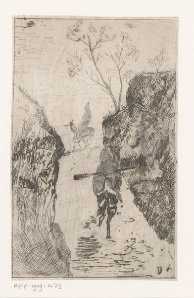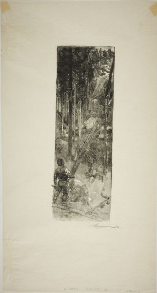 Auguste-Louis Lepère created "Falling Pines," an etching now held at the Art Institute of Chicago. Lepère, working during the late 19th and early 20th centuries, situated himself amidst debates about industrialization, the changing rural landscape, and the representation of labor. Here, the lone figure of a lumberjack stands at the edge of a forest, almost dwarfed by the towering pines. Lepère masterfully uses the etching technique to create a sense of depth and atmosphere. The dark, dense trees contrast with the light filtering through, evoking the physical labor of the man but also his relationship to nature. The felling of trees suggests themes of exploitation and transformation, and the tension between man and nature. Lepère prompts us to consider the emotional and social dimensions of the changing world around us, and the place of working people within it.