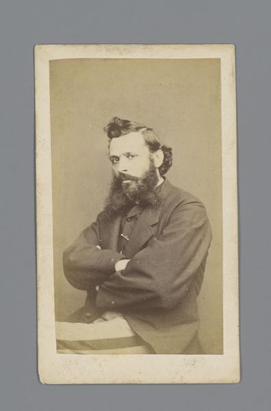 This photograph of an unknown subject was captured by George Gardner Rockwood. The sepia tones and formal composition create an atmosphere of quiet dignity. The sitter’s gaze, directed slightly off-center, and the controlled fall of light, invite contemplation. The frame, with its simple gilded lines, is integral to the reading of the photograph, acting as a threshold between the viewer's space and the subject's portrayed world. The subject’s costume, with its structured lines, and the contrasting texture of his beard, create a visual dialogue. The photograph, as a semiotic system, employs visual codes like pose and dress to signify status and character. The formal qualities, such as the sitter's placement and the photograph’s tonal range, serve not just aesthetic purposes but also partake in broader discourses about representation and identity. Meaning is actively constructed through the interplay between the photograph's inherent structure and the cultural context in which it is viewed, suggesting an ongoing dialogue about the nature of portraiture itself.