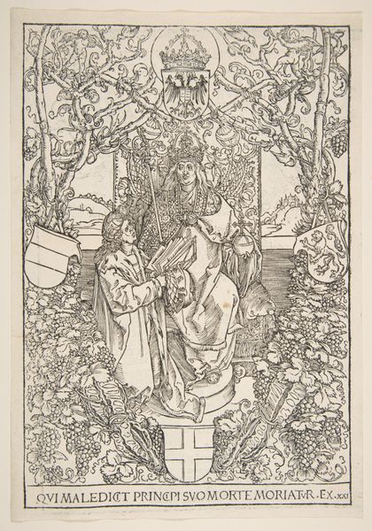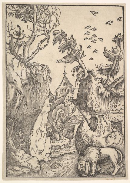 Editor: So, this drawing is Ivan Bilibin’s illustration for Alexander Pushkin's poem "Ruslan and Lyudmila," created in 1917. The incredible detail makes me think of an adult coloring book, but one with this unsettling, mythical vibe. The scale is skewed with that massive head. What’s your take on it? Curator: It's a journey into folklore, isn't it? I always feel Bilibin manages to evoke a certain fantastical atmosphere. He grounds it in this meticulously researched, historical detail, like the warrior's armour which contrasts beautifully against the fairytale weirdness. Editor: Right! That giant head... is that, like, the main antagonist? Curator: Perhaps. What’s captivating to me is Bilibin’s conscious choice to reference medieval Russian culture. It’s more than just illustrating a poem; he's constructing a whole visual language that speaks to Russian identity and tradition. Look at the flowing lines of the beard, or the peacock feathers swirling behind it. Does it feel at all familiar? Editor: I see a little bit of Art Nouveau in those flowing lines? Curator: Precisely! A delightful collision between international style and Russian soul. How fascinating is that? And then the skulls scattered about at the bottom, they add this very sinister edge to the otherwise playful fairytale world. Editor: It's darker than I initially thought! Bilibin makes it hard to know whether to laugh or be frightened. Curator: Isn't that what makes good art memorable? This piece teaches us that you can ground something in its historical past whilst building entirely fantastical worlds and it really makes one ponder!