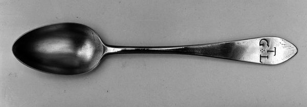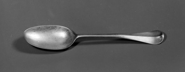 Editor: Here we have a simple yet elegant piece, a silver spoon dating from around 1795 to 1805, currently held at the Met. The maker is T.P. Drown. What really strikes me is how much labour must have gone into shaping metal like this by hand. What's your take on it? Curator: Well, seeing this spoon, I'm drawn to consider its material presence and social life. It's more than just a functional object. Think about the mining and refining of the silver itself – the hands involved, the potential exploitation, and the economic systems that enabled its creation. Does the engraving "A M" give us insight to the life of a household using it? Editor: That's fascinating. I hadn’t thought about the actual labor involved. I was focused on the aesthetics. Is there something about its time period that might illuminate its value at that time, outside of just functionality? Curator: Precisely. Consider the social context of late 18th, early 19th century America. A silver spoon wasn’t accessible to everyone. What does this tell us about class and consumption during that era? It points to a certain level of affluence, wouldn't you say? How did access to resources like this shape the identity and daily practices of those who owned such items? Editor: It does recontextualize the object to consider those questions. The spoon isn't just a tool. It's a signifier. Curator: Exactly! Its meaning is derived from how it was made, who could access it, and how it circulated within society. Material production inherently holds power relations. It bridges the gap between functional object and the symbolism inherent to wealth in society. Editor: It’s like unlocking layers upon layers of meaning! Thinking about all the hands that touched the spoon – the miners, the maker, the owner… it makes it feel so much more significant. Curator: Absolutely. The "simple" spoon embodies complex networks of production, consumption, and social status, all rendered tangible in a single material object.