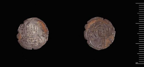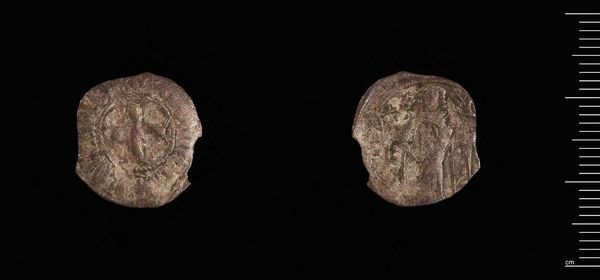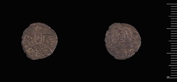 Editor: So, here we have "One-Eighth Stavraton of Manuel II". It's teeny, and looks like a well-worn coin. What can you tell me about this piece? Curator: The interesting thing about this coin is not its artistic merit, but the social conditions of its production and circulation. How did the Byzantine economy shape its material form? Editor: That's interesting, I wouldn't have thought about that! Curator: Consider the labor involved in mining, refining, and minting such a small object. Its value wasn't inherent, but created through systems of power and exchange. Editor: So it represents a whole system? Curator: Precisely. And how that system impacts the coin's physical presence today. Editor: I'll never look at a coin the same way again! Curator: Agreed. It truly opens our eyes.