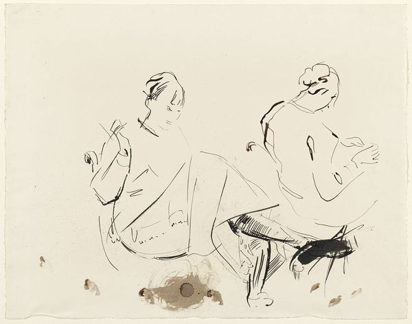 This energetic drawing by Ernst Ludwig Kirchner shows fellow artists Emil Nolde, Erich Heckel, and their partners preparing a woodcut. Kirchner's choice of pen and ink emphasizes the immediate, process-oriented nature of printmaking. Woodcut is a relief printing technique where an image is carved into a block of wood, leaving the design standing in relief. Ink is applied to the surface and then transferred to paper, often by hand, or with a press. The process demands a unique kind of labor. It is physically demanding and requires the artist to directly engage with the material. The black lines dominating the composition are a direct result of this carving process. Kirchner and his fellow artists were part of the ‘Die Brücke’ group, known for embracing printmaking as a means to democratize art, making it more accessible beyond traditional painting. The rough, graphic quality of the woodcut aligned with their desire to challenge academic traditions. By focusing on the social dynamics of artistic creation and the work involved in printmaking, Kirchner elevates the value of craft and collective endeavor within the fine arts.
