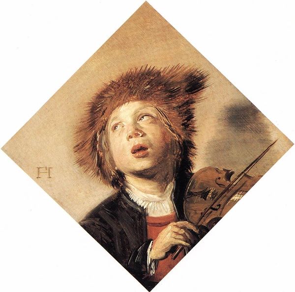 Editor: This is a detail of Frans Hals's "Two Boys Singing," created around 1625 using oil paint. The way he captures the joy of the singing boy with the lute is quite contagious, almost like a snapshot in time. What’s your take on this piece? Curator: Hals captures not just joy, but a specific social performance. Think about the context of the Dutch Golden Age: music was increasingly accessible and participatory. Paintings like this showcased a burgeoning middle class actively engaging in cultural activities, signalling status. The children are likely from well-to-do families. Notice their clothing. Editor: Right, you can tell they aren't poor. I suppose their performance is a show of their upbringing? Curator: Exactly! These are genre paintings, yes, but also subtle endorsements of a particular lifestyle and social order. Consider also how the art market played into this. These images become desirable objects, reinforcing cultural values amongst those who could afford them. How does this revised context affect your initial perception? Editor: It's a lot less spontaneous, more calculated in a way. What looked like a pure expression now seems packaged with social and economic messaging. Curator: Precisely. Hals was masterful in capturing a sense of immediacy, while simultaneously adhering to, or even shaping, the values of his time. It prompts the question of how art continually mediates the relationship between individual expression and societal expectation. Editor: I'm looking at it completely differently now. What appeared innocent is really a complex articulation of identity. Thank you for opening my eyes. Curator: My pleasure. This painting is a reminder that we see with historical eyes. What the artist may have been trying to convey doesn't necessarily dictate the reading a viewer gets now or will get in the future.