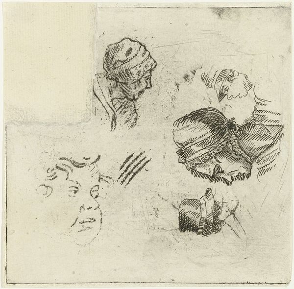 This undated print, Studies van hoofden, of uncertain authorship, from an unknown time, presents a diverse array of heads, seemingly captured from life. Such a study raises important questions about the role of the artist and the social dynamics of portraiture. In the cultural context of the Dutch Golden Age, where portraiture flourished, these studies hint at the artist's engagement with representing the diverse populace of the Netherlands. The varying ages, social types, and expressions suggest an interest in the individual as much as the collective. The work could represent a commentary on the period's increasing social stratification and burgeoning merchant class. To truly understand this piece, we rely on historical research, examining similar works, artists' sketchbooks, and social documents. This approach reveals the print as a product of its time, shaped by social, economic, and artistic currents. Art is never created in a vacuum but always reflects the dialogue between the artist, society, and the prevailing institutions.