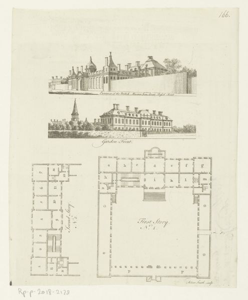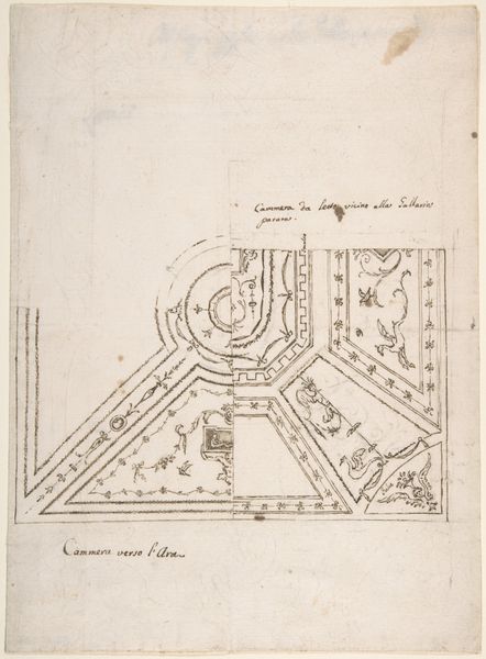 Curator: The etching before us, "Design for a Ceiling," dating to between 1774 and 1778, offers us a fascinating peek into the world of architectural design during the Neoclassical period. The artist here is Leonardo Marini, and this work on paper is currently housed at The Metropolitan Museum of Art. Editor: My initial impression is one of quiet elegance. There's a delicate quality to the lines and the symmetry promises a very calming effect when realized in a space. Curator: Absolutely. That quiet elegance speaks volumes about the socio-political context. Neoclassicism arose in part as a rejection of the more exuberant Rococo style, embracing instead the perceived order and rationality of the classical world. This was an era increasingly preoccupied with notions of civic virtue, republicanism, and a sense of imperial legacy reborn. How does this drawing speak to these values? Editor: I see a careful consideration of power, for sure. Note the recurring motifs, the rosettes, and the intricate geometric patterns, recalling similar ornamentation in ancient Roman villas, all intending to connect the present to a glorious past. The emphasis on clarity and order would, in its intended architectural form, lend a sense of authority. It subtly suggests an ideal—or perhaps an idealized—world. Curator: And those floral motifs – I am compelled by their placement amidst such regimented design. How would you interpret their role? Editor: Well, flowers often symbolize prosperity, beauty, even ephemerality. The interplay of the rigorously structured design with these organic elements adds a layer of complexity. Is it a visual metaphor suggesting that even within the most rigid structures, there is space for beauty, nature, and growth? The artist invites us to ponder the symbolic language carefully chosen to communicate values about order and elegance. Curator: Exactly, the choice of visual lexicon carries intentionality to communicate culture. Thinking about cultural continuity and collective identity, this piece gives food for thought, showing that even architectural design contains memory and purpose. Editor: It really brings the history and values of a period into clear view. Curator: Agreed; it’s amazing how one ceiling design opens so many windows to understanding a historical epoch.