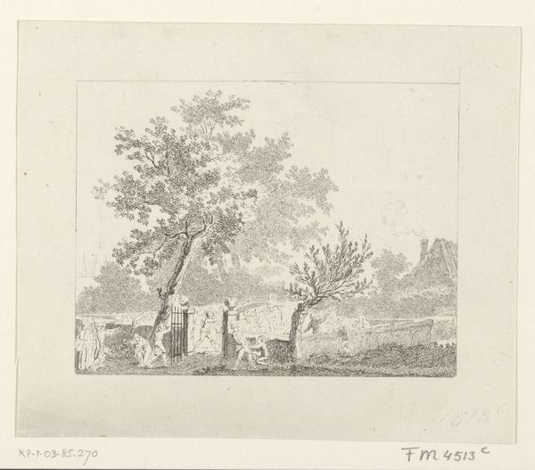 Salomon Gessner created this etching titled "Herders en hun kudde bij een antieke bron" or "Herdsmen and their flock at an ancient fountain" sometime in the late 18th century. During this time, there was an artistic interest in the pastoral and idyllic. Images such as these are a reminder of an idealized rural life, contrasted with the realities of industrializing Europe. Notice the tension between civilization and nature. The classical architecture of the fountain is juxtaposed against the organic wilderness. The people around the fountain seem to exist outside of contemporary society, hinting at the lives of the working class, while at the same time romanticizing them. The soft lines of the etching create a hazy and dreamlike atmosphere. This work invites us to reflect on our relationship with nature and the impact of progress on our collective imagination.