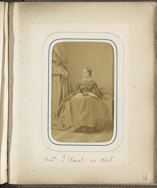 This photograph of Claire Cibiel was produced by Disdéri & Co., likely in France during the mid-19th century. André-Adolphe-Eugène Disdéri was a hugely influential figure in the history of photography, and this small portrait gives us insight into the social and institutional context in which photography developed as both an art form and a commercial enterprise. Disdéri patented a method for producing multiple images on a single plate, leading to the rise of the carte de visite - small, inexpensive portraits like this one that became wildly popular. These cards democratized portraiture, making it accessible to a wider segment of the middle class. The studio’s branding, the subject’s dress and pose, and the very circulation of these images were carefully managed to create a specific impression of status and taste. Understanding the context of this image requires looking into photographic history, the rise of mass media, and the changing social norms around representation and identity in 19th-century France. Ultimately, this portrait serves as a reminder that art is always shaped by the social conditions in which it is made and viewed.
