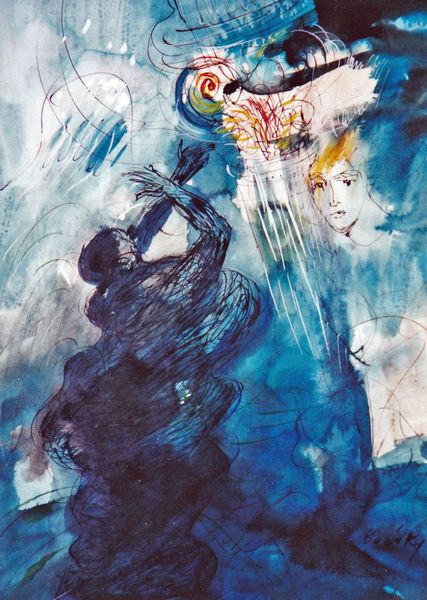 Maria Bozoky made this watercolour drawing, Rilke:The Sonnets to Orpheus, using a light touch and a delicate palette. The way she lets the paint bleed and mingle feels like a dance between control and chance, and it’s in that space that the magic happens. Look at how the colors wash over each other, creating these ethereal layers. The greens and blues, especially in the figure’s form and the background, give the whole piece a ghostly feeling, like a memory or a dream. The thin lines that sketch out the figure add to this sense of fragility. I am drawn to how Bozoky uses the transparency of watercolor to suggest depth and form. It reminds me a little of Odilon Redon, in the way he uses color and light to create these otherworldly, symbolic spaces. There's a real openness to interpretation here, inviting us to bring our own stories to the canvas.