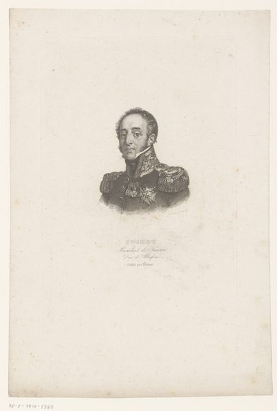 Curator: Here we have Ambroise Tardieu's "Portret van François Christophe Kellermann," an engraving dating from 1820-1821. A study in restrained dignity, wouldn’t you agree? Editor: It strikes me as quite formal, almost severe. The subject’s face, framed by that tightly controlled oval, conveys a certain rigidity. Tell me more about the materiality of the piece. Curator: As an engraving, it utilizes precisely etched lines to create tone and detail. Observe how the density of lines shapes Kellermann’s features, giving depth and texture to his otherwise austere presentation. It’s Neoclassical, so the emphasis is on line, clarity, and order. Editor: And I'm immediately thinking about the engraver, Tardieu, and the labour involved in creating such detail. Consider the time and skill needed to achieve such control over the material, transforming a copper plate into this likeness. Who was Kellermann? Curator: Kellermann was a marshal in Napoleon’s army. The portrait is a product of its time; look at the meticulous detail given to his uniform—it speaks of rank, status, and military might. A clear visual language designed to communicate power. Editor: Precisely! We see not just a man but an icon representing a hierarchical society and its values. The very act of engraving, replicating images for broader consumption, served to reinforce that power. Who had access to this image and what were they meant to do with it? Curator: Perhaps to admire, perhaps to emulate. It also echoes a shift toward democratization and distribution in the early nineteenth century, a proliferation of reproducible artworks. Editor: This print as an object raises questions of social class and consumption as much as Kellerman's portrait expresses power. I see now why that feeling of severe formality strikes me, it's about the formalization of that system. Curator: Indeed, the power of a clear message reinforced by considered artistic design. It seems that this approach brings together a clear understanding. Editor: Leaving us much to consider about the relationship between a historical portrait, the hands and skills of its maker, and its life circulating as an accessible image.