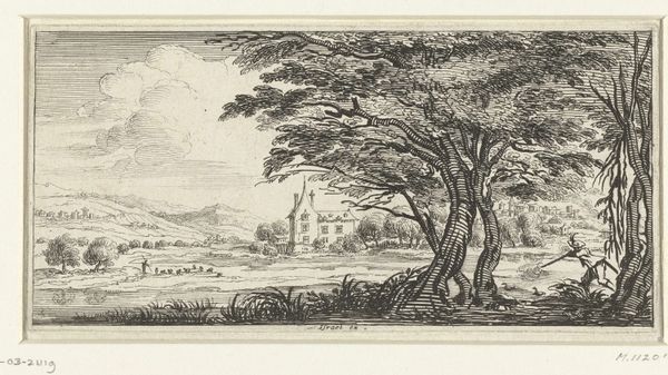 J.F. Clemens created this landscape view with plants, insects, and a tree, sometime in the late 18th or early 19th century, using engraving. The composition is neatly divided: foreground teeming with life, and a distant, simplified horizon. The textures are achieved through dense cross-hatching, giving a tactile quality despite the flat, printed medium. Clemens uses scale and detail to create a structured contrast. The oversized insects and snails in the foreground are meticulously rendered, inviting close inspection. In contrast, the background is a study in reduction, almost abstract. The artist seems to be playing with traditional landscape conventions, subverting expectations of depth and focus. The tension between the detailed foreground and the sparse background may reflect Enlightenment ideas about the natural world—a world both knowable through observation and infinitely receding into abstraction. The very act of engraving, with its precise lines, mirrors a scientific impulse to dissect and understand nature. The print serves as an early form of visual analysis, inviting us to consider the structures that underpin our perception of the landscape.