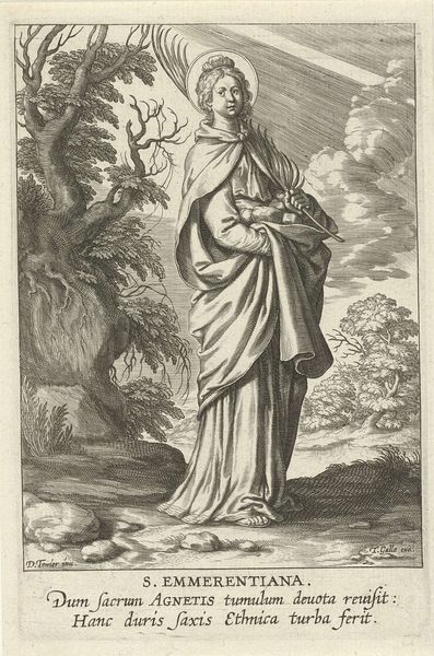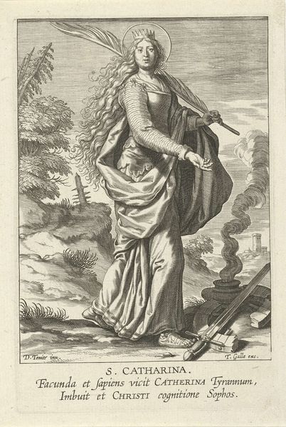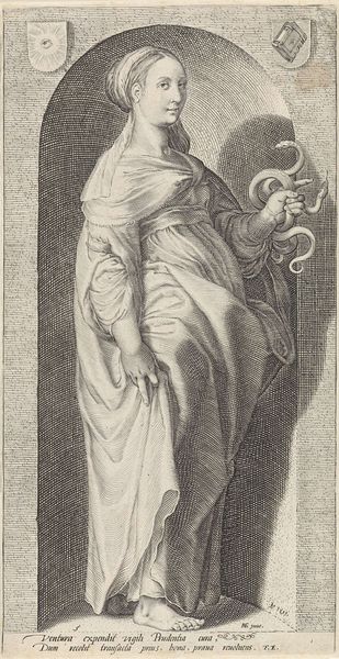 Boëtius Adamsz. Bolswert created this print, Heilige Paula van Rome als kluizenares, or Saint Paula of Rome as a recluse. It illustrates Paula, a 4th-century Roman widow who renounced her wealth to follow a life of asceticism under the guidance of Saint Jerome. The print presents a fascinating narrative of female piety and social transformation during the early Christian era. Paula, a woman of aristocratic Roman descent, chose to relinquish her privileged status and embrace a life of simplicity and devotion. Her actions challenged conventional gender roles and class expectations, offering an alternative model of female identity centered on spiritual pursuits rather than material possessions or social standing. The image is rich with symbolism: the skull, the cross, the book - objects alluding to mortality, faith, and knowledge, integral aspects of Paula's spiritual journey. The light shining from above signifies divine grace, illuminating her path as a holy woman and ascetic. The artist captures the emotional depth of Paula's devotion. Through the lens of art history, we can contemplate the intersecting themes of gender, class, and religion in shaping individual identities and cultural values.