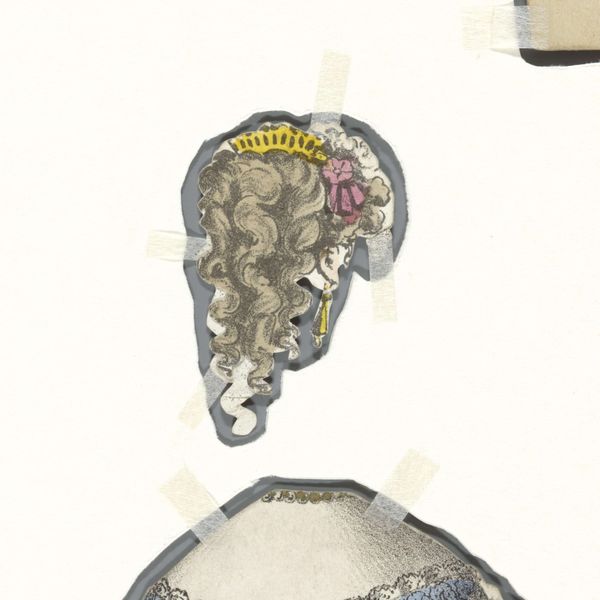 This paper doll's wig, of unknown date and authorship, is made from paper and printed material. The paper’s surface is a testament to the modes of production prevalent at the time. These paper dolls are made from relatively inexpensive materials, hinting at mass production. The intricate printing suggests industrial techniques. The design of the wig, with its elaborate curls and adornments, reflects the fashion aesthetics of the period. Yet, the disposable nature of paper dolls raises questions about labor. How much work was involved in producing these fleeting objects, and who was performing it? The contrast between the detailed design and the materials implies a dynamic tension. Looking at this wig, we might question distinctions between fine art and craft. It’s a reminder that materials, making, and context are essential to the full meaning of an artwork.